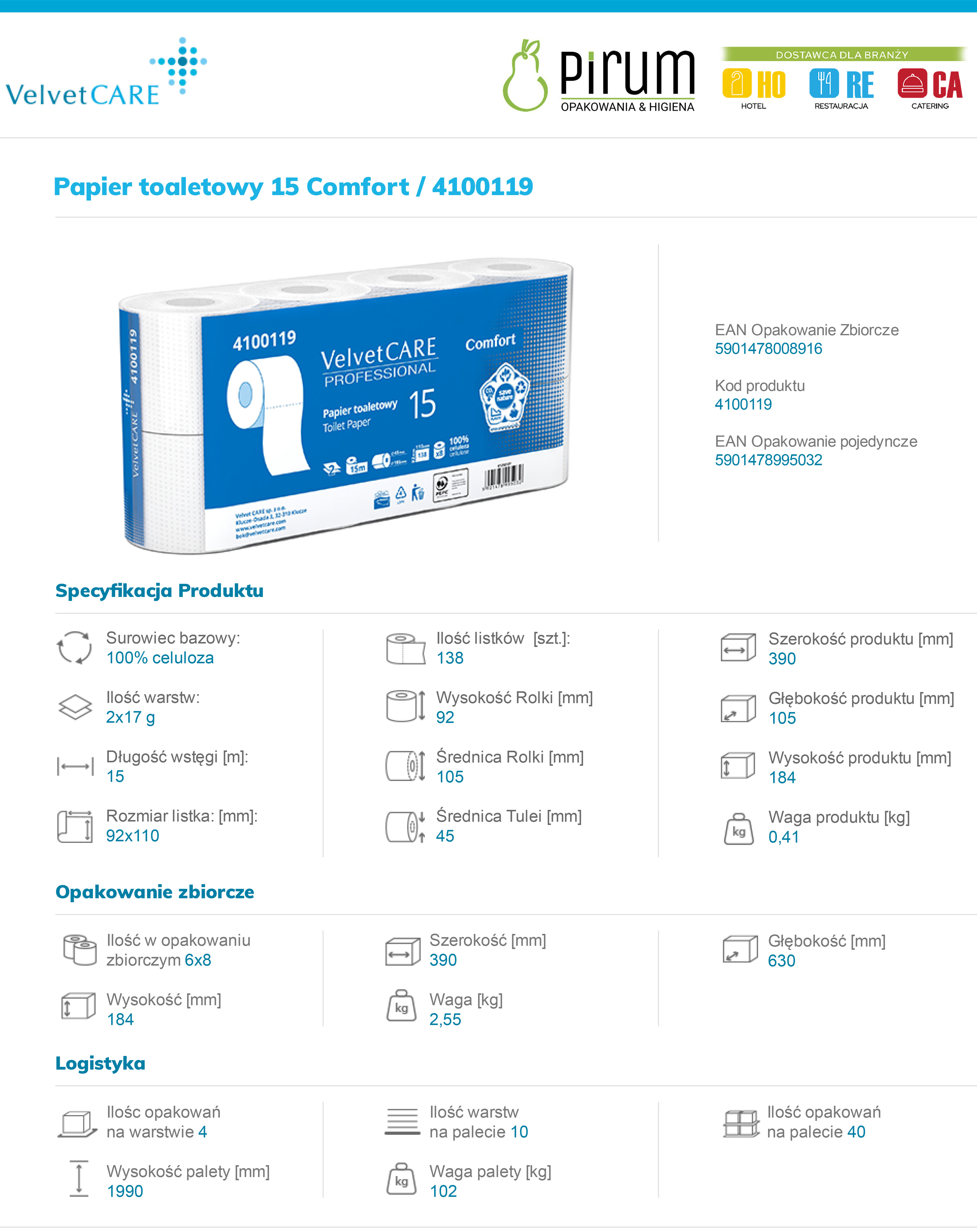 papier toaletowy VELVET CARE PROFESSIONAL100% celuloza