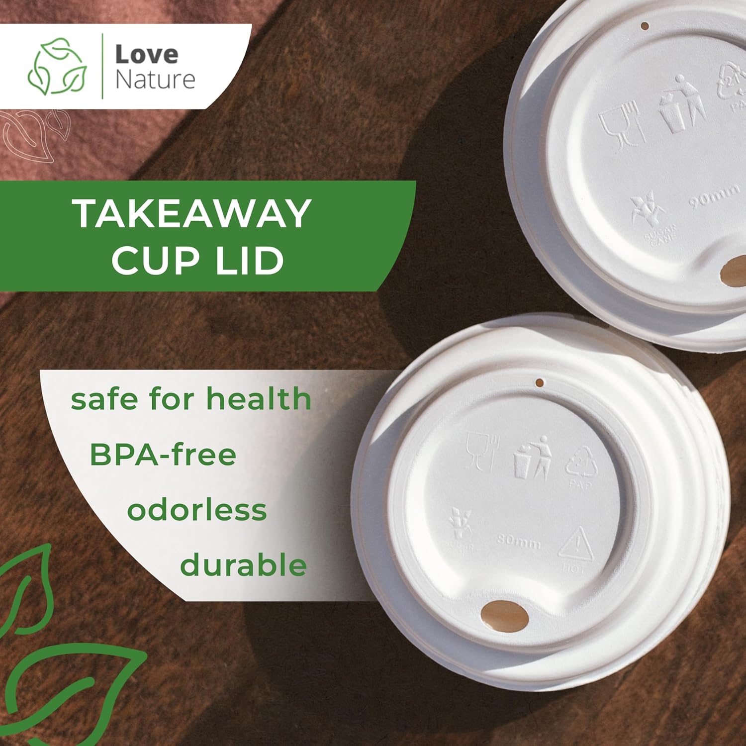 Ekologiczne wieczko do papierowych kubków o średnicy 90mm z pulpy trzciny cukrowej.Cena za 50 sztuk